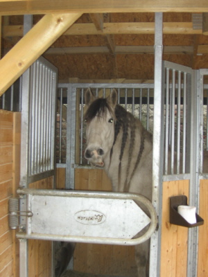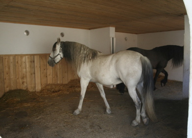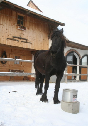 Unser Aktivstall ermöglicht eine natürliche Herdenhaltung durch ein ausgeklügeltes Fütterungssystem. Die computergesteuerte Heudosier- u. Kraftfutterstation können den Pferden eine natürliche Nahrungsaufnahme gewährleisten. Heu und Kraftfutter wird in kleinen Mengen über 24 Stunden an die Pferde abgegeben. Durch die an der Station angebrachte "Nachlaufsperre" wird auch einem rangniedrigerem Pferd eine "entspannte" Futteraufnahme garantiert. Das Konzept ist wie der Name schon sagt "BEWEGUNG". Durch eine gut durchdachte Anordnung der verschiedenen "Anlaufpunkte" z.B. Tränke, Kraftfutterstation, Ruheraum wird die Bewegung der Pferde garantiert. Die einzelnen Stationen sind möglichst weit voneinander getrennt worden, so das die Pferde immer weite Strecken zurück legen müssen.Die frostsichere Tränke bietet den Pferden rund um die Uhr Zugang zu Wasser.